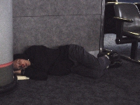 I've made it a habit on this trip of wearing the nose any time I sleep in public. It's my concept behind "Apathetic Performance Art." Anything that adds to the artistic nature of the world using as little energy as possible. The nose comes in very handy for this purpose. So I wear it when I sleep. And walk through strange towns. And go through customs. And when I'm with someone and we're...er...nevermind.